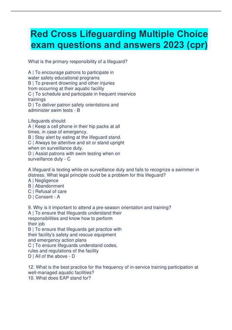 Free PDF red cross lifeguard multiple choice test Hardcover Open Library